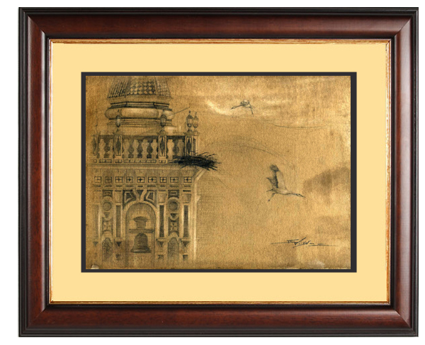 Pero esta racionalidad y permanencia del objeto se funde con la voluble y liberada alma del artista que planea como esas blancas cigüeñas sobre los bellos rincones de su pueblo (Aire).