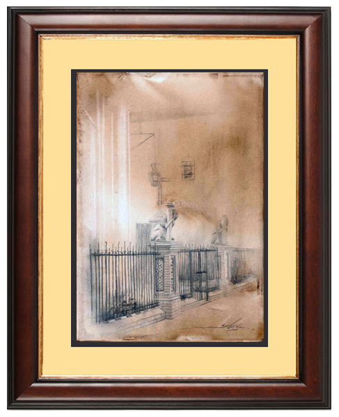 El dibujo está cargado de racionalidad y permanencia (Piedra), siendo un trabajo que se centra en la línea, las volumetrías y el movimiento del objeto representado, cuidando también su valoración espacial (claroscuro).
